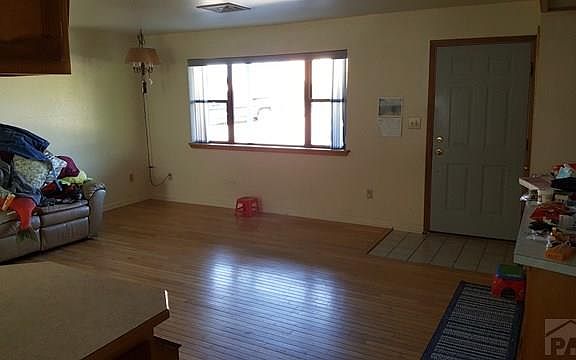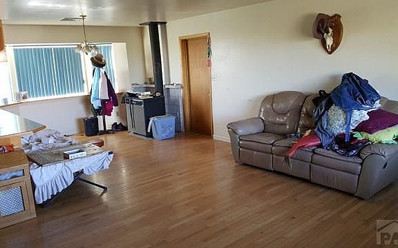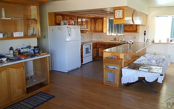 A home with a view. Home backs up to Swallows Road with an unobstructed views of the Spanish Peaks, Wet Mountains and Pikes Peak. This 3 Bedroom, 2 bathroom and 2 car garage home has been well maintained with only one owner. You will love the wood flooring throughout the main floor. Mature trees and wood fencing cover the front yard, 17 x 16 shed and fenced area with small barn in the rear. RV parking with dump station attached to septic system. Septic system has been replaced in the last 5 years. Refrigerator, range and dishwasher stay with home, including additional refrigerator in garage.