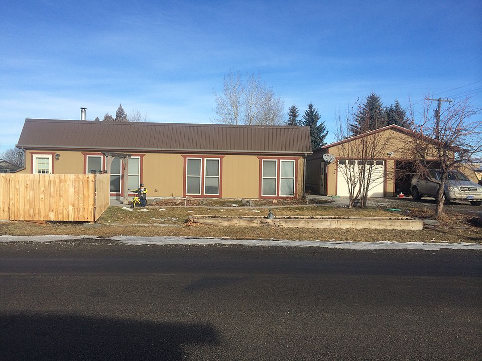 Fantastic home on nicely landscaped corner lot! 1350 SF with open floor plan, 3 bedrooms, 1 full bath, and a huge detached 2 car garage. Enjoy the large windows and wood burning stove, and nice sized laundry room. There have been many great updates including new paint, trim, carpet, tiled bathroom, and several new light fixtures. Super energy efficient, metal roof, and fresh exterior paint. 10,000 SF lot across from the school. Come see!
