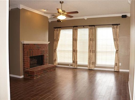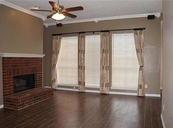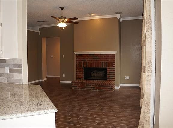 Charming single family home with many new features. The new features include the wood look tile floors along with granite countertops, backsplash, faucets, dishwasher, microwave, stove, wood fence, carpets, some light fixtures and paint. The floorplan is light bright and open with 4 nice size bedrooms a family room with an all brick fireplace and several windows looking out to the nice size open patio and large yard. The storage building in the backyard allows for plenty of extra storage and enjoy the large garage. Come and see this charming property and be ready to make your offer.