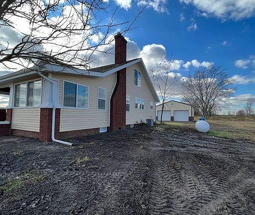 Welcome to this completely remodeled and amazing home complete with a brand new 2 car detached garage and 5 ACRES of wonderful and partially wooded land. EVERYTHING IS new including but not limited to: electrical, plumbing, mechancials, roof, exterior, doors and windows, all drywall, flooring, lighting and the home has been reconfigured to include dining room and a nice front sitting area with loads of natural light throughout. There is a brick fireplace in LR too. Kitchen includes all SS appliances, granite Countertops and a nice tiled backsplash. There are 2 ample sized bedrooms upstairs with a nice 3/4 bath and large extra closet and the basement is 3/4 finished with a 1/2 bath added and an expansive rec/bonus room. The main floor has 2 large bedrooms including the main bedroom with an en suite and large walk in closet. Top Notch quality throughout so make an appointment today!!