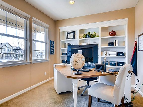 The pride of ownership is evident when you walk in the door. Upgrades and improvements in every room and include wide plank birch hardwood flooring, custom shiplap accent wall, outdoor gas fireplace, fully fenced back yard, gas cooktop, main floor study PLUS bonus loft, finished basement with surround sound. The open kitchen features a large island that overlooks the family room and includes a separate eat in area plus a formal dining room with built in cabinetry. Upstairs the spacious master bedroom has amazing views of the mountains and a luxurious master bathroom and custom designed walk in closet with ample room for two! You'll love living in this resort like neighborhood complete with parks, playgrounds, pools, trails, and the award winning Sundial House. The HOA includes countless monthly activities including wine tastings, cooking classes, fitness room and classes, pool parties, Pikes Pub, movie nights, concerts, painting parties, annual car show, and much more!