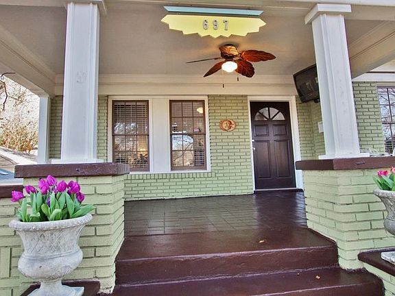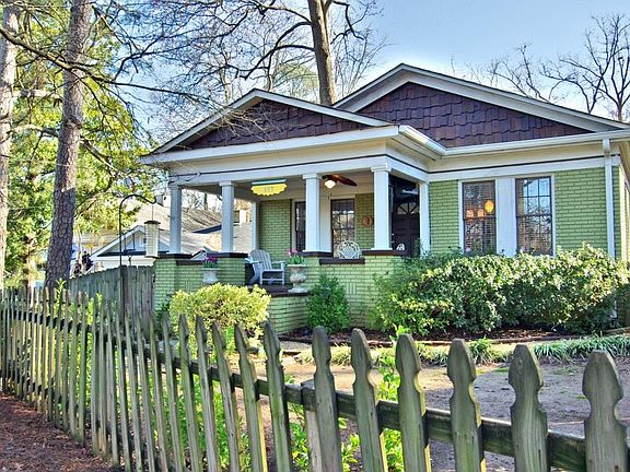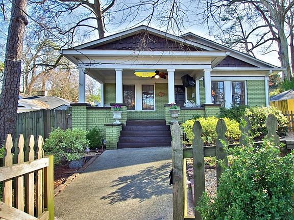 Grant Park hilltop retreat has a big front porch. Inside, you'll find 14-foot vaulted wood ceilings & new skylights, a spacious kitchen w/stainless appliances & oiled butcher block countertops, beautiful hardwood floors, a craftsman fireplace w/vented gas logs and built-in bookcases on either side. The private fenced backyard is gated with alley access for plenty of off-street parking. Located just 1 block from Grant Park and 2 blocks from the Beltline.