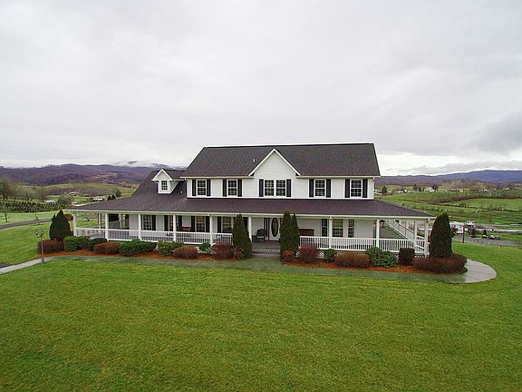Blue Ridge Mountain Home with Expansive Views.This 4000 square foot + home has expansive views of the Elk Creek Valley. A quality built 3 or 4 bedroom/ 3.5 bath home that is perfect for a primary residence, second home or Bed and Breakfast. There is a full basement w/ full bath that could easily be finished out to create even more space in this already spacious home. Features include hardwood floors throughout, central vac, generator, bonus areas upstairs,gas hot water on demand, walkout basement, nice mudroom and enclosed breezeway area connecting home and garage, wrap around extra wide porches, large master suite with jetted bath and shower, huge walk in closet area, large custom kitchen with Corian Counter tops and tons of cabinet space. There are fantastic views from almost every room. There are two garages, one attached, one detached. Both have large finished bonus spaces upstairs. The detached garage has a large workshop in the basement, with plenty of room for ATV's , tractors or equipment. Home and garages are all connected with paved driveways and drive from state maintenance is also paved. All of this is situated on 13.369 acres in the heart of the Elk Creek Valley. This property is located in close proximity to Jefferson National Forest and all of the recreational opportunities Grayson County has to provide. This is a one of a kind property with a lot to offer and endless possibilities. Additional acreage available