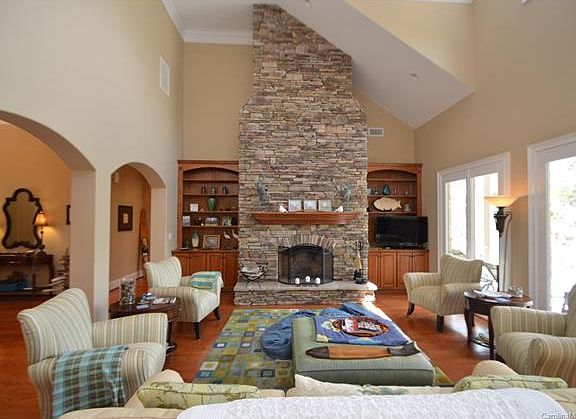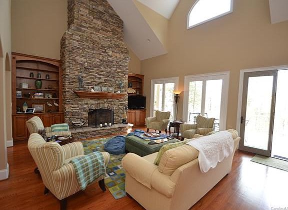 GORGEOUS LAKE HOUSE ON BADIN LAKE, NEW LONDON, an easy drive from Charlotte and from Winston Salem, NC! Energy Star Rated Home! This 1.5 story/basement home has a septic permit for 3 bedrooms, 3.5 bathrooms. Home is full brick and sits on 1.43 acre waterfront lot with pristine shoreline. The Heron Bay community provides ideal setting for relaxing lake living! Boat slip and pier, floating dock! All bedrooms overlook lake. Kitchen has custom wood cabinets, double ovens, island, walk-in pantry, granite counters, recessed and pendant lighting. Master on Main opens to upper Deck. Gorgeous stone Fireplace in Great Room! Walk out basement has secondary bedrooms, gorgeous stone Fireplace in Den with wet bar, storage room for floats, canoes, & a covered concrete patio w/ceiling fan. Bonus Room on upper level located over Garage. This room could easily be used as a fourth bedroom; however, septic allows for three. Attic. Security System. Satellite Dish. HOA. Home has a shared dock on Badin Lake.