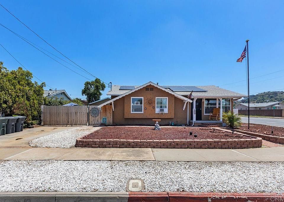 Seize this incredible opportunity to own a charming 4-bedroom, 2-bath home nestled in a welcoming community in El Cajon. This home boasts a spacious living room adorned with original hardwood floors that evoke a sense of warmth and nostalgia. The family room features vaulted ceilings and a cozy wood-burning fireplace, creating an inviting space for relaxation and gatherings. Practical amenities include a dedicated laundry room and a walk-in pantry, enhancing the home's functionality. Outdoors, the property offers a fully fenced yard complemented by a newer deck, ideal for hosting gatherings or enjoying serene moments alone. Additional features include a lengthy driveway with capacity for multiple vehicles or RV parking, a 2-car detached garage, solar panels for energy efficiency, and a dedicated dog run for pet lovers. Don’t miss the chance to make this delightful residence your new home!
