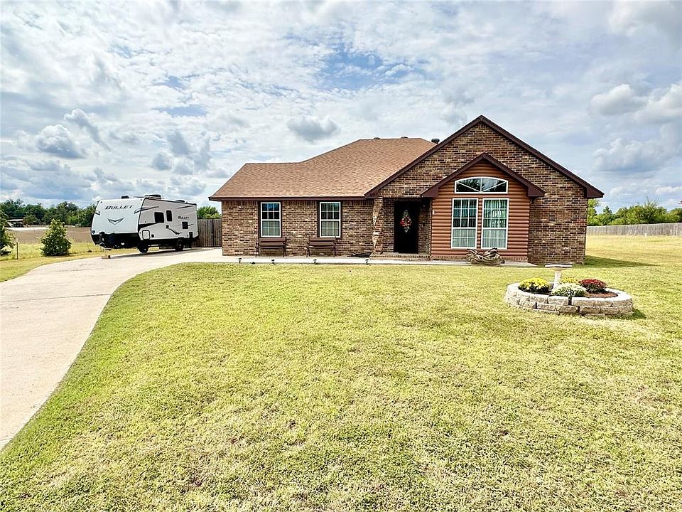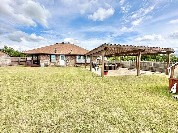 Beautiful custom brick home w log accent. Exterior: On half acre, additional parking, wood fence around backyard, pergola for entertaining, greenhouse, side covered patio from kitchen, R-19 Insulation, city water, city sewer. Interior: Tongue and groove ceilings, oak woodwork, luxury vinyl wood flooring. Primary bedroom has two closets, separate shower, jacuzzi tub. This home is an open concept - with living area, dining, kitchen.