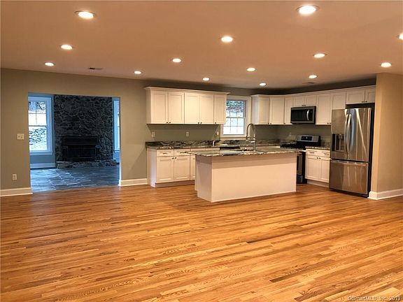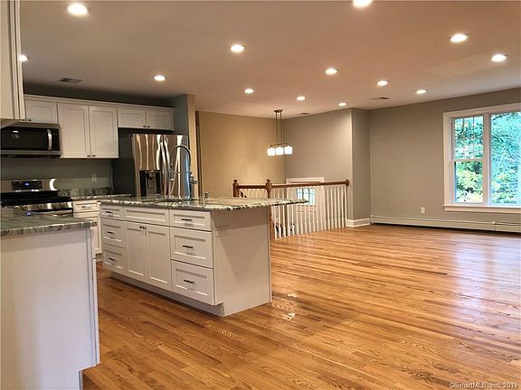 Beautiful raised ranch in the Woodtick area of Wolcott. This entire home has been renovated inside and out with attractive finishes from top to bottom. The main living area has an entirely open floor plan, perfect for entertaining that is open to a brand new, tastefully remodeled kitchen with gorgeous white cabinets, neutral counters and new SS appliances. Off the kitchen is another great room to entertain, with woodburning stove, oversized windows for lots of natural light and french doors leading out to the attached deck. The interior of this home also features new hardwood floors throughout, recessed lighting + all new fixtures and classic paint colors from main living area to the bedrooms. There is a finished basement with additional living space + 2-car/under house garage. There are two full baths, both remodeled. The exterior of this home features a new roof, new Hardie board siding, energy efficient egress/oversized windows and 20 x 20 pressure treated deck on just over a 1 acre lot with spacious and private back yard. The home has CAIR, liquid propane for heat and also features all new electrical, plumbing, insulation. Truly a MUST SEE OWNER MOTIVATED Move in before the holidays.