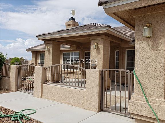 Landscaping frames courtyard entry of this popular split floorplan home. Striking chamfered ceiling in formal dining room.Kitchen has breakfast nook,granite counters,new LG SS appliances and walk-in pantry. Guest bath has new walk-in tub and shower. Master bath includes large tile shower, jetted soaking tub, and walk-in closet. Backyard features a pergola, double gates on both sides, a 10x20 stuccoed storage building and irrigation. Room for RVs.