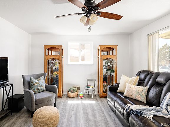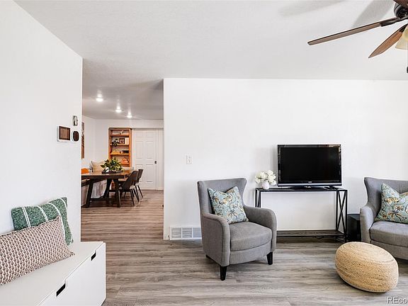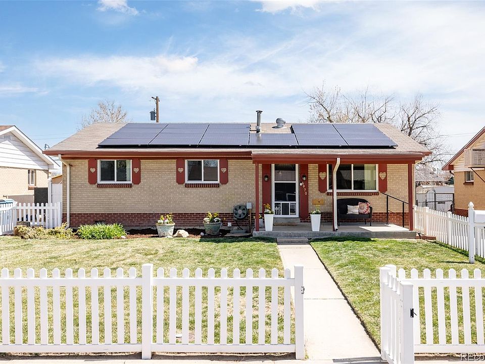 Inviting charm envelops the entirety of this Holly Heights home wrapped in a blonde brick exterior. A covered front porch overlooks a beautifully maintained yard surrounded by a white picket fence. Further inside, solid surface flooring flows throughout a functional layout. A wide window draws abundant brightness into a large living area. Enjoy hosting gatherings w/ guests in a dining area complete w/ a built-in bench. Stylishly remodeled, the kitchen features sleek cabinetry, stainless steel appliances and a tiled backsplash. The addition of a spacious bedroom suite with walk-in closet offers both comfort and privacy, enhancing the functionality of this home. Three additional bedrooms, including the Primary Suite with a large walk-in closet, are complemented by two baths additional w/ vanity storage. A laundry closet w/ a washer and dryer set is an added amenity. Retreat outdoors to a private backyard w/ a quaint patio. Generous storage is found in the two outdoor sheds and oversized one-car garage. Driveway is expansive with space to park up to 4 cars off-street. Additional features include: 3 yr old roof, 2 yr old furnace, newer windows throughout, 5 yr old A/C unit, Ecobee thermostat, and Brink whole-house security system (Buyer must activate their own account).