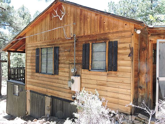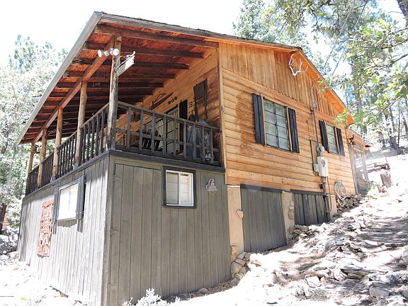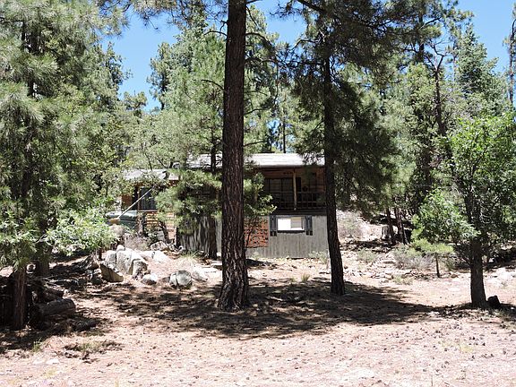 Cozy cabin in the cool pines on 1.9 acres! Escape the heat & crowds, come relax & enjoy this beautiful private home. Two comfortable bedrooms, one full bath. Spacious deck with a view of the Ponderosa Pines. Screened in private back patio. Nice open floor plan, great room with vaulted ceilings and an authentic rock faced wood burning fireplace with a Heatilator. Three individual electric heaters throughout the home. Very nice and bright due to lots of windows. Lynx Lake just a few miles away for fishing and boating, lots of hiking trails in the area. Sold fully furnished all the linens, dishes, and lots of furniture. Bring your clothes and come experience the serenity. Being sold AS-IS, electricity is on. There's a 1500 gallon water tank.