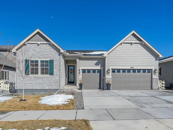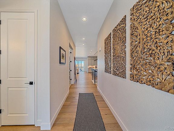 Why wait for new construction and still have to do all the landscaping? This Richmond Powell ranch style model has designer upgrades galore and backs to open space with reservoir views! At the heart of this home is an awesome gourmet kitchen featuring quartz counter tops, GE Cafe / Bosh appliances, Double oven, gas range and large walk in pantry. Spacious family room with a tile fireplace and adjoining dining room area. Newly installed engineered hardwood flooring on most of the entire main level. Two generous bedrooms, one with a private bathroom, and a shared bathroom are available and make perfect accommodations for family or guests. The owner's suite features a private bath, custom tile, huge walk in shower and his and hers walk-in closets. Main floor laundry . Main floor study with built-in bookcases and French doors, Finished walkout basement features a huge family room, wet bar and a flex room ideal for guest room/ home gym/ or theater room. Two additional bedrooms and a shared bathroom with a shower. 3 car garage with gas line for future heater. Great location close to E470. Shopping and restaurants. Do not let this home get way!