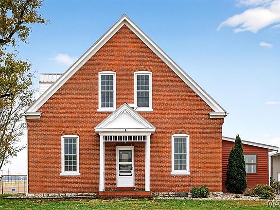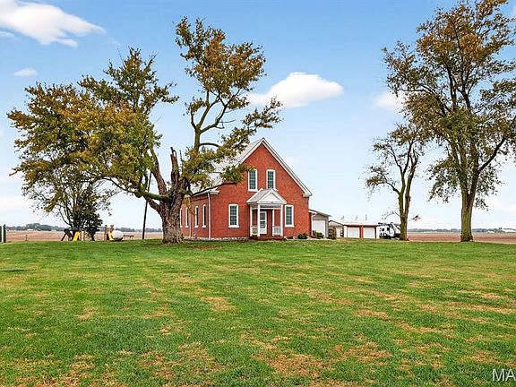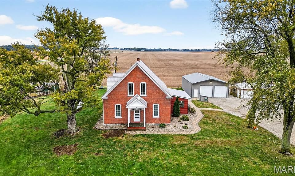 Step into timeless character and modern comfort with this beautifully maintained 2-story brick farmhouse. Featuring 10-foot ceilings, a newly updated heated/cooled sunroom, and spacious living room with built-in bookshelves. The main level offers a huge eat-in kitchen complete with stainless steel appliances, pantry, and center island. Also is 2 main level bedrooms, a full bath, & laundry room. Upstairs you'll find 2 large bedrooms with exposed brick walls adding rustic charm. There's also potential to easily add an extra bathroom, giving room to grow. Abundant closet & storage space. Outside you'll find a landscaped paver patio, Newer 28x46 pole barn, 10x10 doors w/openers. 23x21 shed. Both with concrete floors & electric. New 10x10 concrete floor chicken coop! Don't miss out!