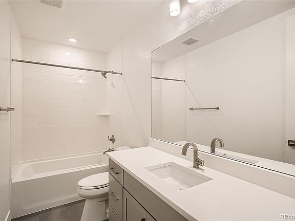 • Description: Private Bath To Bedroom 2: Tile Floor, Single Vanity, Neutral Tones