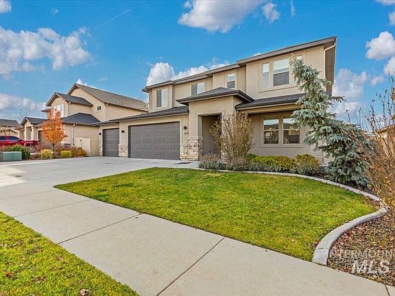 Located just 15 minutes from downtown Boise, this spacious home is calling you to southeast Boise. Built in 2017, this modern beauty is nestled in quiet Bonneville Point. Boasting two master suites with one on the main, an oversized bonus room on the second floor, and a secondary office, this home is perfect for the entertainer or multi-generational family. The kitchen is a chef’s dream, outfitted with stainless steel Bosch appliances and a spacious butler pantry. The fenced-in backyard offers a great view the beautiful Boise foothills and night skies. Updates have been made including top of the line HVAC equipment replaced in February 2023, a whole house water purification system, a temperature-controlled garage, and a port for an EV charger. Come check out your next home today!