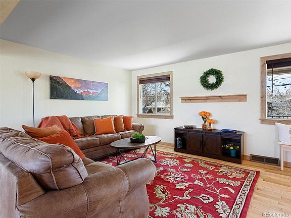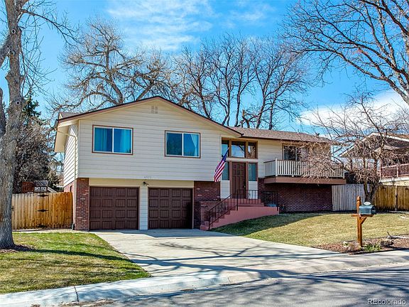 Welcome home to this charming bi level located in the heart of Arvada. You can feel the serenity in this 4 bedroom 3 bathroom home with a 2 car garage. The kitchen is open to the formal dining room and has a sliding glass door to the deck, and it features a front balcony allowing views of Downtown Denver. The kitchen opens to the family room and dining room, this open floor plan has great natural light. Step out to the balcony overlooking the generous back yard and enjoy a cup of coffee while looking at the mature trees and landscaping. The Front balcony is charming and perfect to enjoy the city views of Denver. This open floor plan makes entertaining easy and welcoming. The downstairs is a garden level view with an additional oversized bedroom which is perfect for an office as this extra space has a bathroom nearby. The back yard is oversized with room for a garden, a chicken coop, and plenty of space to enjoy beautiful Colorado. Roof was replaced in 2018 along with gutters and newer deck and outdoor patio insulated garage doors. Drip system for flower beds. Mr & Mrs Clean live here.