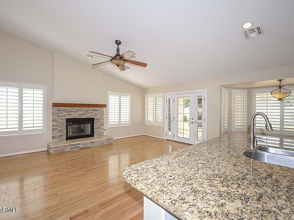 Discover this beautifully updated single-level home in a prime location, set on a spacious lot. This 3-bedroom plus a den, 2-bathroom home with a 3-car garage features a 12 ft RV gate and allows RV parking. Major upgrades include a resurfaced pool (Feb 2018), new AC (Apr 2020), new roof (Mar 2022), and freshly painted fence and house (Apr 2021). The home boasts gray cabinetry with granite countertops, newer stainless steel appliances, a pantry, and a gas fireplace in the family room. Enjoy ceiling fans throughout, an updated master bathroom, wood and tile flooring, and an inside laundry room. Family room plus a formal living/dining room. Shutters on the front windows. Backyard with natural grass. Additional features include garage storage and proximity to A-rated schools.