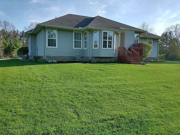 This beautiful home consists of a ranch style with high ceilings, and it is situated on a spacious countryside acreage. There is ample room for an additional building on the property if desired. A new roof was installed in July 2023. The main level consists of a master suite on one side of the living area and two bedrooms plus a full bathroom on the opposite side. In the middle there is a large living room, kitchen, laundry room, and front office. The basement was finished in 2017, adding an extra-large recreation room, a bedroom with an egress window, another bathroom, and plenty of storage space.