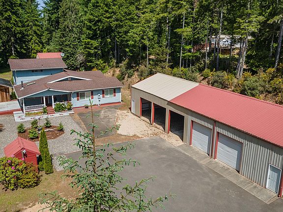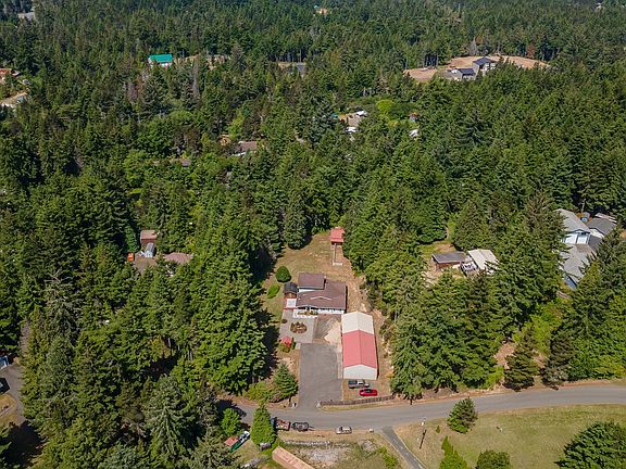 Just a short distance from the Oregon Dunes, located just six miles to Lakeside and eight miles to North Bend, this property has plenty to offer. The 2660sq ft two-level home has a total of four bedrooms and three bathrooms. Situated on a spacious, private, and usable tree-lined 1+ acre lot with ample parking, a large shop with loft, and an additional backyard outbuilding for all your storage needs. The kitchen is open to the dining area with easy access to outdoor areas great for entertaining and enjoying the covered front porch. Three bedrooms are located on the main floor with two bathrooms, laundry, and two separate living spaces. The large primary suite bedroom is located upstairs with dual walk-in closets and an ensuite bath with double sinks. The upper level has its own deck with access to and overlooking the large backyard. Don't miss out on making this your slice of the Oregon Coast!