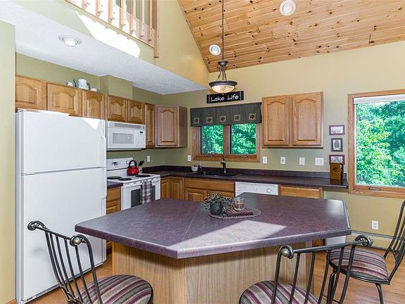 CPO Lake home! Contemporary 3 bedroom 3 bath home in Iron River on Long Lake. Two main floor bedrooms. Main floor full bath. Large open living room with kitchen/dining room and gas fireplace great for entertaining. Lots of natural light from the large windows and patio doors that go out to the main level deck. Master suite upstairs along with bonus loft area. Lower level contains large family room, patio doors to the lower level deck, and a 3/4 bath. Long Lake is a 263 acre lake with a depth of 28'. The home sits on .96 acres, has 150' of lake frontage and has a 3 stall detached garage. Current owners just had a brand new boiler installed!! Come take a look at this great home today! This home is a certified pre-owned home that has been pre-inspected and comes with a one year home warranty. Home inspection by: Koti Home Inspections. 1-year home warranty by Choice Home Warranty.