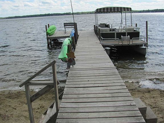 Perfect little get-away cottage. Bring logs for the waterfront firepit & relax. Cute as a button, this 2 bedroom, 1 bath & convenient kitchen & nice sun porch to relax with your morning coffee. Great dock and it comes with the pontoon boat & furnishings. A must see!!!