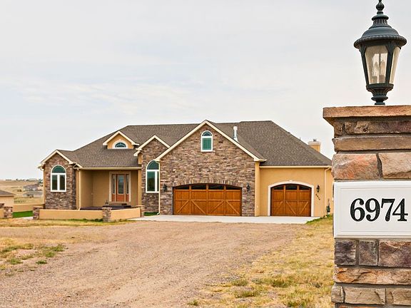 Crafted to perfection, this is one of the truly dazzling homes in close proximity to Cheyenne. It was thoughtfully sited on nearly 5 acres to capture mountain & prairie views at every turn of this expansive luxury property. With 5,000 sq. ft. of exquisitely comfortable living space, this home boasts every conceivable amenity. From Silestone countertops to Jenn-Aire appliances, the gourmet chef will feel right at home. The massive stone fireplace dominates the large gathering area on the main level, while the full bar awaits you in the walk-out basement. When fall arrives, you will enjoy perfecting your shot in the indoor shooting range located in the outbuilding. Consider this your personal invitation to the lifestyle of your dreams.