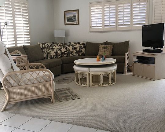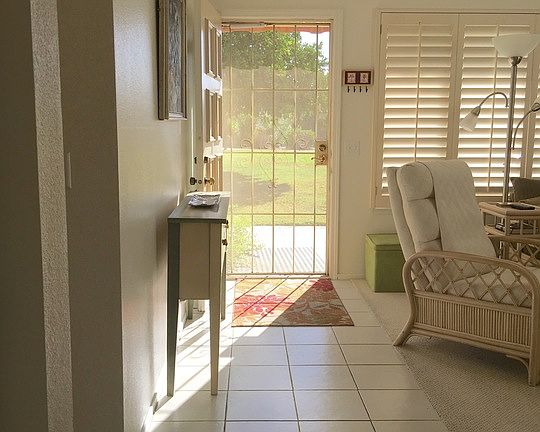 Light and bright 3 br / 2 ba condo, double pane windows, some plantation shutters, 2 car carport adjacent to unit, pebble tech patio. This condo could be easily moved into or rented as is. Very well maintained with updated master shower and kitchen counter tops. Mountain View Villas is a quiet community and this condo is steps to one of 5 pools. Tennis courts and club house are yours to enjoy in this gated park like setting.