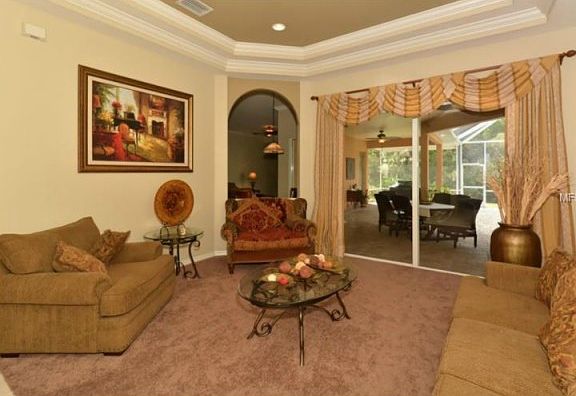 AWC - Taking Backup Offers MOTIVATED SELLER! Surrounded by lush landscaping, this well designed home with large open spaces and extended lanai leads you to a private preserve with walkway to the river where you can ADD YOUR VERY OWN PRIVATE DOCK. Paver drive & barrel tile roof enhance curb appeal as you approach & step inside through the front door. Upon entering you will be dazzled by the array of custom features & upgrades to include double coffer ceiling in living room, 3 l/4 baseboards, crown moldings, recessed lighting, and sliders that open to the great outdoor space. The large open kitchen includes stainless steel appliances, maple wood cabinetry, decorative backsplash, quartz counters & breakfast area surrounded by huge windows which bring in the great natural light. The grand Master bedroom suite features a great walk-in closet, oversized bay window, private bath with dual sinks, separate tub & shower. Other features included in this home are a great utility room with laundry cabinet & sink, pull down attic stairs in garage, painted garage floor, exquisite window treatments, light fixtures & fans. The expanded screened & covered lanai is the perfect place to relax, entertain & again enjoy that special view. With no CDD fees, community clubhouse, gym, game room, kitchen, heated pool overlooking lake with fountains, kayak/canoe launch and nature trails, this is the home to experience the ultimate Florida lifestyle!