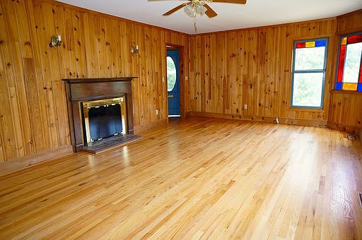 Private Retreat off Blackwell's Hollow RoadLarge 4 bedroom, 2 bath house on 30 acres with mountain view. Refinished red oak floors, fully tiled baths, with 5 foot cast iron porcelain bathtubs, all randim width butterfly groove knotty pine paneled walls, large cedar-lined closets throughout, heart pine doors, heart pine mantlepiece, working fireplace. Very large rooms. Two separate entrances. Centrally heated and air-conditioned. Insinuated widows throughout. Lot's of storage and large front porch with beautiful views.