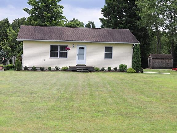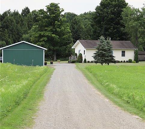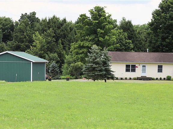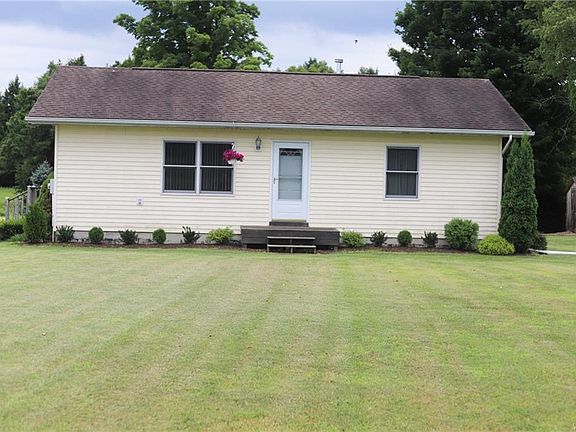 Must see ranch in extraordinary location! This tidy home is set on a picturesque 46 acres, and includes sprawling lawns, pond, wildlife, and views for miles. Kitchen features extensive, well crafted cabinets. Dining room includes sliding glass door leading to deck for indoor/outdoor dining possibilities. Sunny master bedroom with large closet! Property also includes both a two car detached garage and a shed for extra storage. Location is key, and this house is perfectly positioned; 15 minutes south of Hamburg/OP and just north of Ellicottville for winter adventures. Don't miss this opportunity for idyllic country living!