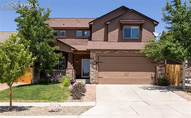 Wonderful curb appeal greets you as you drive up to this beautiful, professionally landscaped, impeccably maintained and cared for, fully finished 5 bedroom, 4 bathroom, Classic Homes stucco two story in highly desirable Indigo Ranch ~ which offers gleaming oak hardwood floors throughout the main level ~ a dedicated office w/French doors ~ spacious gourmet kitchen with ample cabinetry space, butler's coffee station, large pantry, gas cooktop, granite counter tops, kitchen island and stainless steel appliances ~ with large dining area separating kitchen and living room w/faux stone accented gas fireplace w/mantel ~ and powder room by garage entry. Upper level features a light and bright owner's suite w/tray ceiling ~ adjoined by expansive 5-piece bath w/soaker tub ~ stand alone tiled shower w/seating ~ double walk-in closets ~ two large secondary bedrooms plus large laundry room w/mountain views, cabinet counter w/drawers and shelving. Builder-finished basement includes large family room ~ two additional bedrooms and a full bathroom. Home is further complemented by A/C ~ two water heaters ~ newer 2016 roof ~ an attractive 10x10 covered front porch which invites one to read a book or enjoy a beverage any time during the day while listening to the soft Colorado breeze gently quake the leaves of the tall front yard Aspens. Walk out from the dining area to a great, fully fenced back yard w/expanded patio and fire pit ~ brand new sod, auto sprinklers and corner custom storage shed. Neighborhood park w/playground is within walking distance just a block away. Home is centrally located with easy access to Peterson ~ Powers shopping and services ~ Ft. Carson and downtown along with access to the north corridor via Powers to I-25 and Denver ! A beautiful move-in ready home with pride of ownership evident throughout ~ be sure to schedule your showing before it's gone!