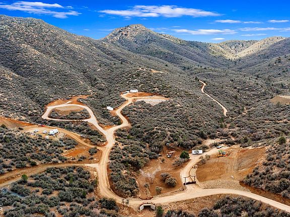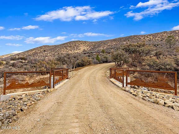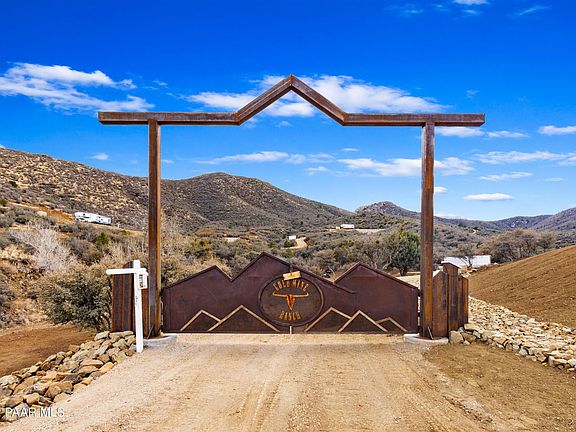 Enter this 4.19 acre property through a beautiful iron gate, with engineered gate foundation, ready for any semi RV, Horse Trailor or Trusse package! This is a build ready, amazing , private view lot with many improvements! This 4.19 Acres for what ever your heart desires with a seasonal creek with foot bridge to wander over to your very usable, future back paddock or playground, or custom garage Also a front corral area potential next to the creek; fence permit for this area too! Artesian well that never draws down! Remarkable for this area! Pump house with 200 Amp service in & connected, also a full solar array for well pump, with UV light & filter. Hosebibs in place, 50 amp service setup for RV. The large cut and fill pads .