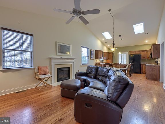 End unit ranch townhome. Open floor plan that is warm & inviting. Living room, dining room and kitchen are all open under a vaulted ceiling with skylights. Gas fireplace in living room. Center island in kitchen offers casual dining. Beyond the door at end of kitchen is the laundry, entrance to your own private rear courtyard and garage entrance. The primary bedroom is large and over looks the private rear courtyard. Primary bath offers walk-in closet, double vanity and step in shower. The 2nd and 3rd bedrooms are located at the front of the home and share a hall bathroom. The basement is vast and unfinished with a window. Attached 2 car garage. Economical gas heat. Convenient location. Close to restaurants, shopping, and highways. Additional parking lot towards end of Ella Circle.