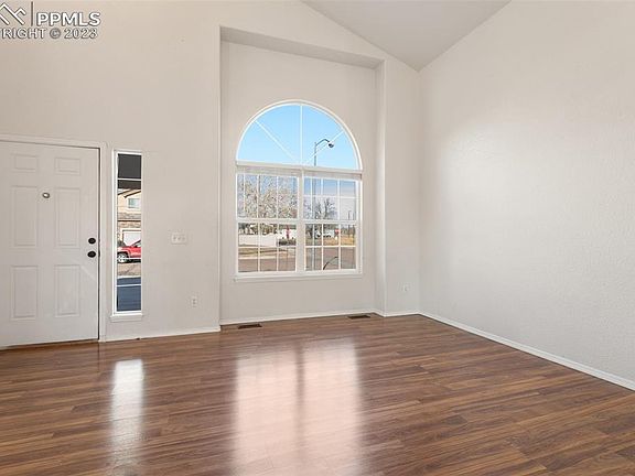 Beautiful 2-story, 3 bedroom, 3 bath, 2 car garage home on a corner lot with updates throughout! You will love the open layout, the natural light, and the location. The main level features new luxury vinyl flooring with 2 living areas including vaulted ceilings attached to the spacious kitchen with lots of cabinet space and stainless-steel appliances. A large Master bedroom with a private bath and walk-in closet, 2 additional bedrooms, and a Full bath complete the upper level. Additional features include large insulated, unfinished basement, central air conditioning, a newer roof, newer water heater, a large open backyard, and PAID-OFF solar panels! Close access to shopping, schools, and Ft Carson!
