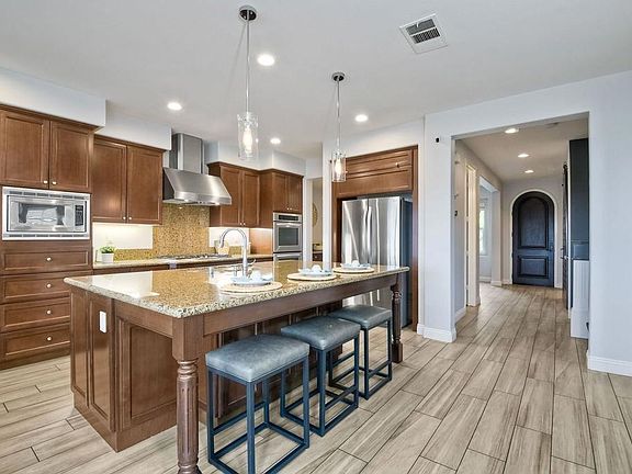 La Costa Greens in Carlsbad! Gated courtyard entry, chef's gourmet kitchen with large island & eat-in kitchen, stainless steel appliances, double ovens, BED & FULL BATH DOWNSTAIRS perfect in-law suite or office, great room off kitchen features 18' ceilings with lots of light, master bath features two walk-in closets w/custom organizers, separate vanities, bonus room upstairs is perfect TV room for the kids, 3 of the bedrooms have full attached baths, backyard has a built-in BBQ, fire pit, & pergola, oversize garage with epoxy floors & built-in storage, views to La Costa Resort, no one behind you. Tankless water heater, brand new (2) zoned AC units, end of cul-de-sac location. all residents have access to the "Presidio" which features a pool with cabanas, spa, gym, clubhouse, & tennis courts. Close to shopping, restaurants & Alga Norte park. MUST SEE!
