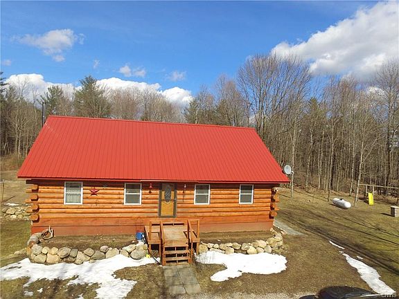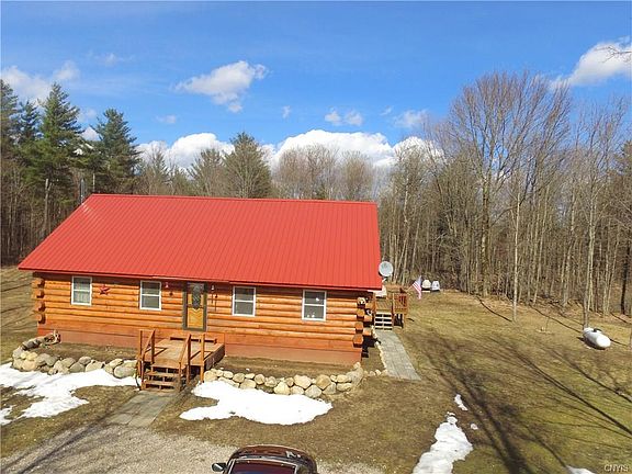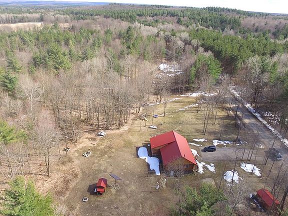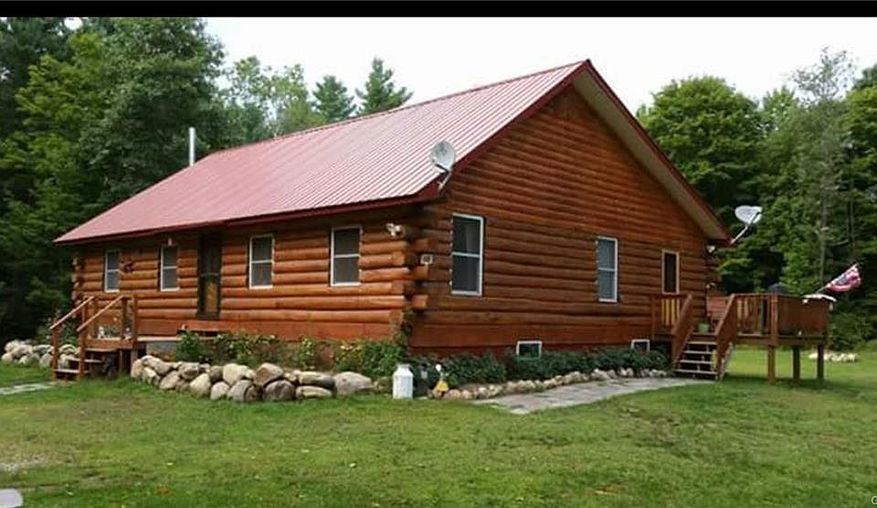 Amazing 2008 Log Home situated on a quiet country road, containing 9.8 acres and an abundance of wildlife! Walking in to this newer home, you will be greeted by the warm living room, with cathedral ceiling and a great open-floor plan. The three bedrooms are good-sized, each having it's own closet, with the master being a walk-in! The eat-in kitchen boasts an array of cabinet space as well as all the appliances included! The basements runs underneath the entire house and is open for whatever you want to do with it! Get back to nature with 1000's of state land close to this land, snowmobiling trails, and off the grid solar! Call today to see this move-in ready home!