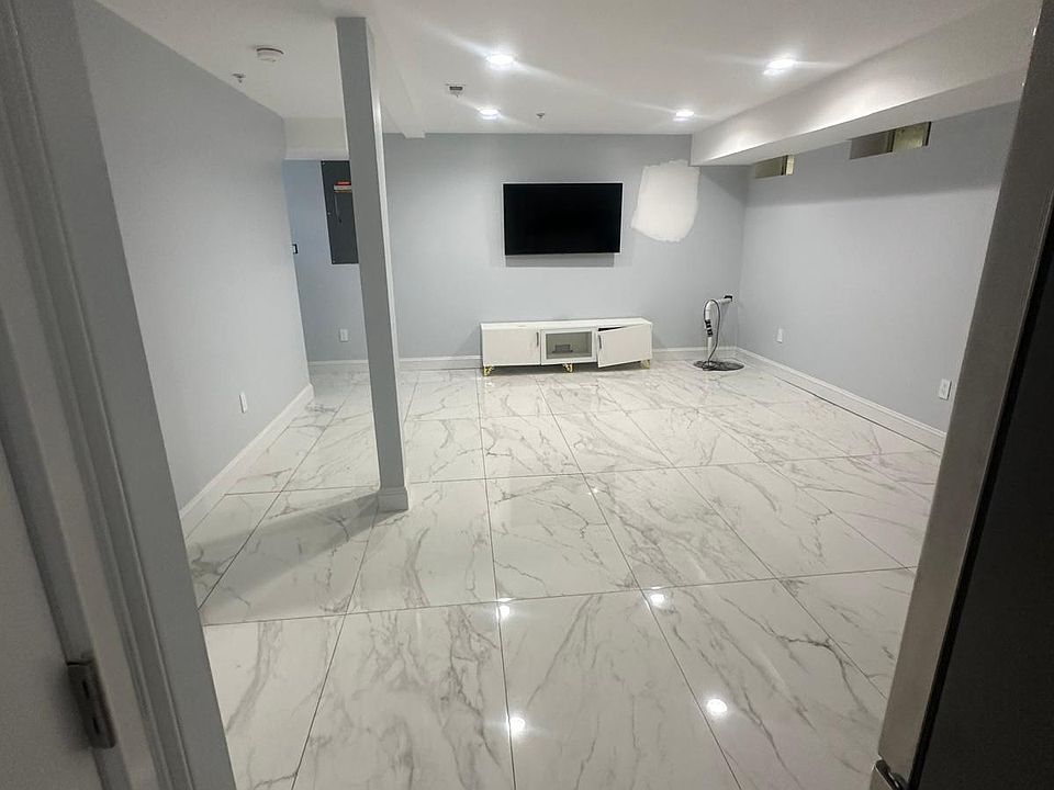 This stunning cozy Beautifully Renovated basement Apartment style unit.... ONE bedroom, ONE bath, private entrance, new everything, sparkling floors, 6 month lease with possible renewal. There is a parking lot conveniently located at the entrance door of the unit. In a desirable neighborhood, this home has been totally renovated, located in a single-family home shared with owners.
