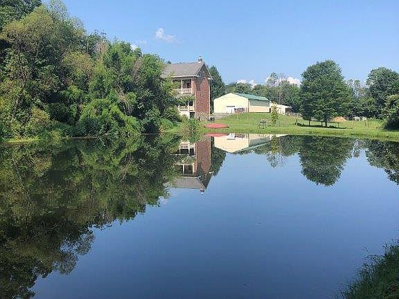Gentleman's Farm features historic 1875 farmhouse on 12+acres mix of open fields & woods. Wrap-around covered porch & open patio overlooking the 3/4 acre spring fed pond welcome you. Home features large kitchen w/granite counter tops, tile backsplash, SS appliances, & counter seating open to DR W/HW floors & brick FP. Completing first floor LR W/Tray ceiling, recessed lighting, HW floors & full bath. An open staircase leads to the 2nd floor with 3 bedrooms, full bath & balcony overlooking pond perfect for relaxing. 3rd floor W/Primary suite that includes large bedroom W/Original wood floors, exposed beams, recessed lights, full bath W/garden tub, rain shower, double vanity, and tile floors. Spacious outbuildings include multi-level barn w/3 horse stalls, hay loft & storage + oversized garage large enough for 2 RV'S + multiple cars, equipment, & workshop. Large chicken coop, run in shed. Fenced pasture, basement, updated electric, plumbing, CA, windows heating system, & wood stove.