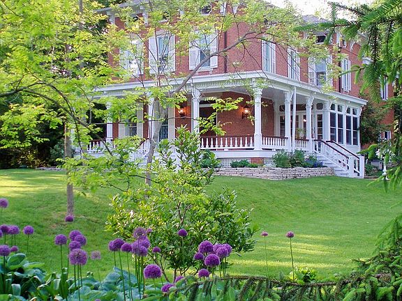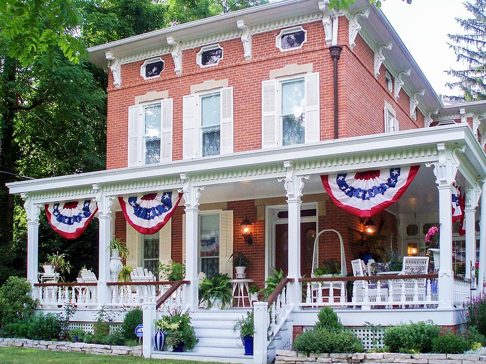 Headley Manor, (est. 1848) a much admired historic home with fabulous curb-appeal. The exterior of this grand brick Italianate home features a magnificent wraparound porch, windows with keystone accents, elegant cornice corbels, decorative attic windows, and a spectacular solid walnut double door entry topped with a ruby glass transom. Much of the 1848 quality workmanship can still be seen in the elegant foyer staircase, high ceilings, hardwood floors, faux painted soapstone fireplaces, ornate plaster ceiling medallions, stately pocket doors and wonderful charm. This home blends well cared for original architectural detailing with modern updates including a stunning new custom Super White quartzite and stainless kitchen, great room with exposed brick walls, and an owners en-suite with its own sitting room w/breakfast kitchen and laundry. Relax on this 2 acre oasis including a 5-car detached garage, large established perennial gardens, abundant wildlife and a priceless view of Blacklick creek.