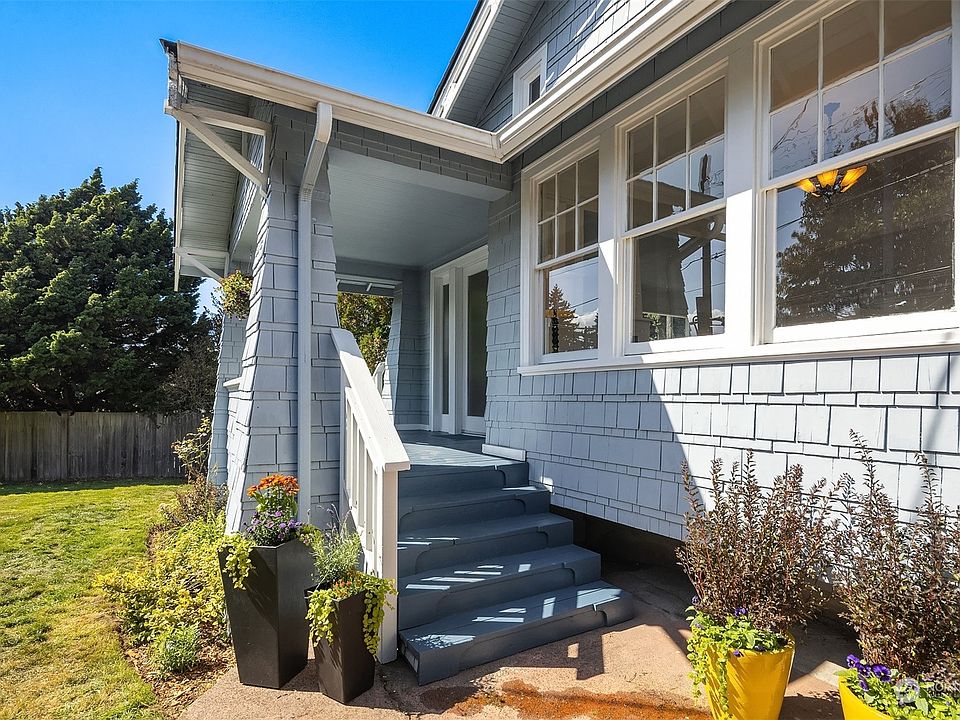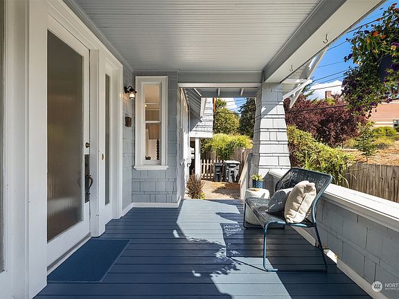 Incredibly charming Craftsman Duplex, each unit has separate exterior access & outdoor space. The main unit boasts beautifully refinished oak floors throughout with charming B&W hex tile floors in the period perfect full bath, complete with claw foot tub. The main living area features tons of natural light, cove ceilings & a gas fireplace, don’t miss the beautiful built in cabinets in the charming dining room. Brand new stainless steel appliances, refinished floors & fresh paint in the kitchen. The upstairs unit features a full kitchen, bathroom, bedroom & living room with peekaboo views out towards the Olympics. Move right into this wonderful home, and even use future income from the second unit to help you qualify & pay your mortgage.