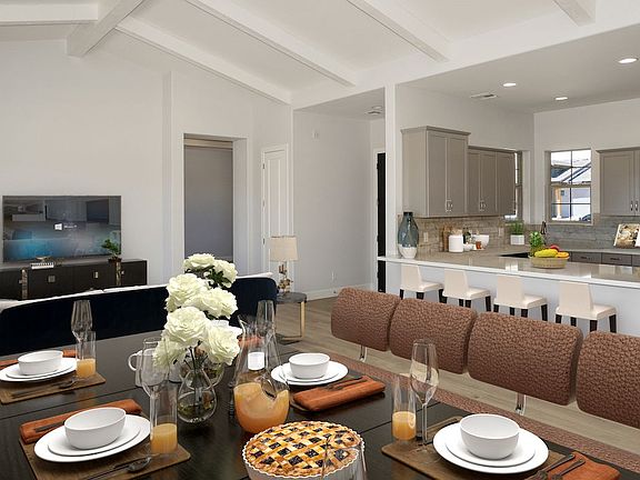 The Aspen welcomes you with a relaxing covered porch, where you pull up a chair and enjoy an early morning cup of coffee.. Upon entering the home you will be greeted with a large great room and dining room with plenty of space to entertain friends and family. There will be also be plenty of gorgeous Arizona sunrises and sunsets that will be showcased through the oversized sliding glass door. Evening's can be enjoyed on the backyard patio as you take time from your busy day to sit down and relax. As the evenings wind down, the owner's suite will be ready to welcome you to a private and quiet space separated from the rest of the house by a hall. Family or visitors can continue their evenings in the great room or retreat to the privacy of the other bedroom.