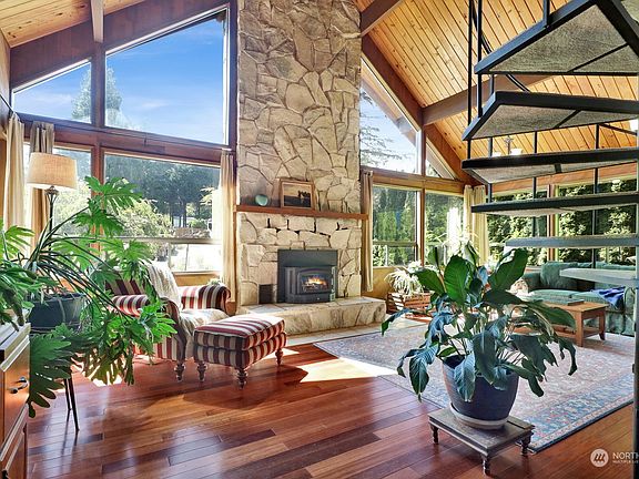 Custom built home located between Birch Bay Park & Point Whitehorn, just 1 block from the water. Soaring wood vaulted ceiling w/dramatic Green Stone fireplace, recently installed new wood stove & chimney liner. Fresh new paint throughout interior of home. Main floor features living rm, 1 bdrm, 3/4 bath, kitchen & dining. Expansive deck off kitchen & dining area for outdoor living. 2nd floor includes mezzanine area w/ spacious primary bdrm, bath & 3rd bedrm, bath, both have decks off the 2nd floor bedrooms w/peekaboo views of the water. Recent upgrades include *new $30k solar panels (elec. only $8.00/month!) *new $5k electrical panel *new battery backup attached to solar panels *remodeled bath $11k *new LVP floors upstairs & 1st floor bedrm.