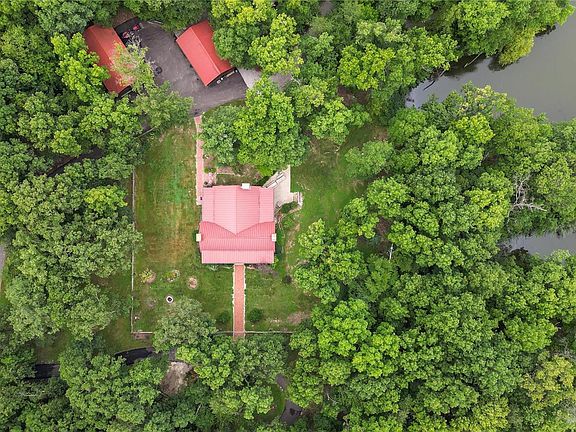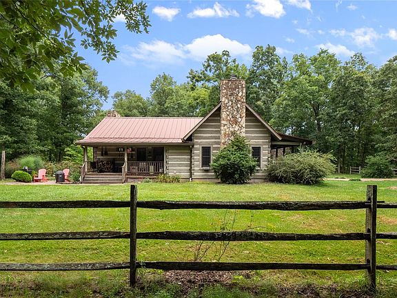 Welcome to this charming rustic cabin nestled in a 10-acre wooded setting with a serene lake. Meticulously crafted with hand-hewn logs, this home offers a perfect blend of charm and modern comfort. The spacious kitchen features custom cabinets, wood beams, and a natural stone fireplace, opening to the dining room and leading to a screened-in deck with breathtaking lake views. The main living area boasts a second stone fireplace and built-in bookshelves, creating a cozy and inviting atmosphere. The primary bedroom also includes a natural stone fireplace, a full bath, his and hers closets, and direct access to the screened-in deck. The basement continues the rustic charm with tray ceilings and wood trim, and it has been updated with a remodeled secondary kitchen area and new flooring. This property includes two outbuildings, a new concrete boat ramp, and an asphalt driveway with a loop through the woods for enhanced accessibility. The home is equipped with geothermal heating and cooling.