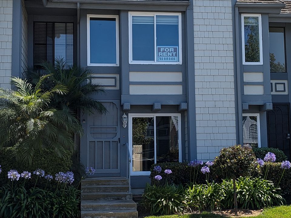 Townhouse is 2 stories, 1,300 sq ft with 2 bedrooms upstairs including a fireplace and view of the coastal greenbelt along with a full bath and laundry facilities. Downstairs is the living room with a second fireplace, the kitchen, dining room and half-bath along with a private patio with a gate opening to the greenbelt along with an attached garage and access to plenty of rear parking. Carlsbad Crest has two pools with adjoining spas and is close to I-5, shopping, restaurants, bike paths, beaches and Batiquitos Lagoon. 12 months