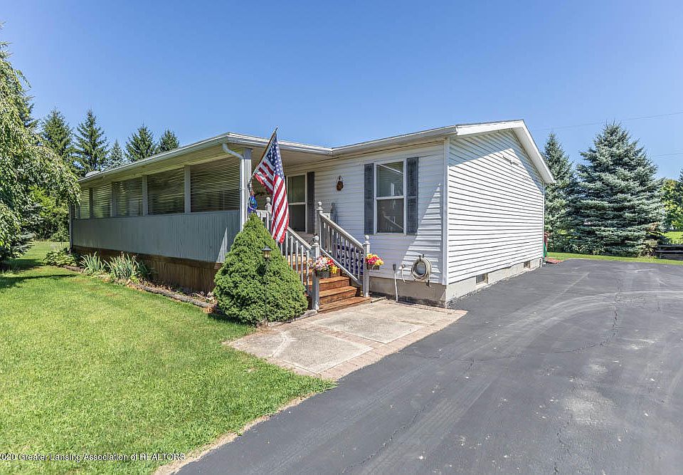 Wow, 1.62 acres in the country, St. Johns schools, 2 pole barns, huge front porch and large deck with hot tub! 3 bedrooms, 2 full baths including a master bath and walk in closet, split floor plan with master on one side, 2 bedrooms and a bath on the other. Full basement ready for your ideas for finishing. Private setting with trees on all sides. Formal dining and eat in kitchen, flex room currently used as the bar room with slider to deck. Front porch enclosure easily removes for great breezes throughout the house. Newer roof, all appliances to remain. New furnace and A/C being installed.