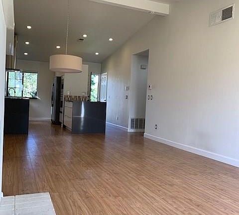 Rare opportunity to Rent/Live in a single story end unit ,only one neighbor attached. Located in the highly desirable beach community of Las Playas! Updated kitchen cabinets, pantryroll-out drawers & Baths. Large combo living room/dining room with vaulted ceilings & fireplace. Master bedroom has a full wall of closets & vaulted ceiling. Neutral colors. Patio slider leads to a beautifully landscaped backyard & access to garage.