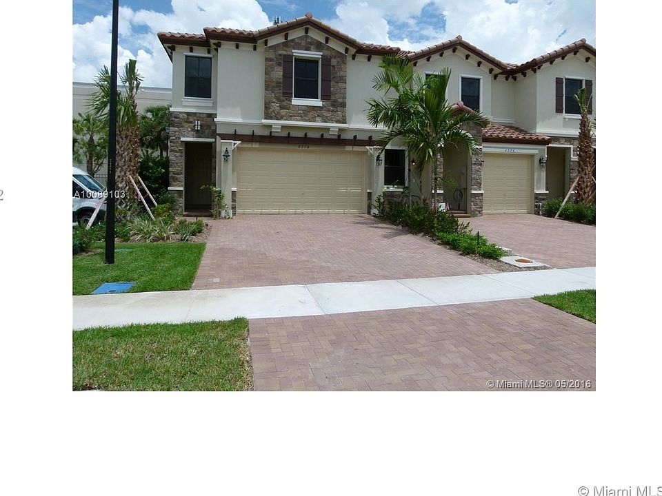 EVERGREEN MODEL, 2 YEARS OLD HOME, MAGNIFICENT 2-STORY TOWNHOME 4/3.5 WITH 2 CAR GARAGE & WIDE BRICK PAVED DRIVEWAY, FITS AT LEAST 2 ADDITIONAL CARS. KITCHEN FEATURES LARGE ISLAND, GRANITE COUNTER TOPS, BACKSPLASH & S/S GE APPLIANCES, WASHER AND DRYER INSIDE, 24X24 POLISHED PORCELAIN TILE ON FIRST FLOOR, CARPET ON SECOND FLOOR, AUTOMATIC GARAGE OPENER, ALARM SYSTEM WITH KEYPAD, COMMUNITY SWIMING PPOL AND CABANA, EXERCISE LOOP INSIDE COMMUNITY. VERY CLOSE TO TURNPIKE AND SAWGRASS EXPWAY.