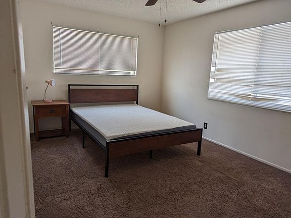 3 bedrooms 2 baths single family home with spacious living room and large, fenced yard with mountain view. Connected garage with access to house. Partially furnished with beds and table. Walking distance to national park. 6-month minimum lease Renter pays utilities owner pays trash