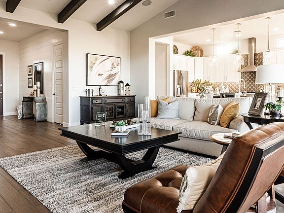The Keystone model welcomes guests with plenty of living space.. You are greeted by a sizable front porch, one that would provide many mornings, days or evenings of relaxing enjoyment. Upon entering the home, the impressive foyer will lead you directly into a large great room, a room built for entertaining. If you need to take the party outdoors, the oversized great room sliding glass door opens up to allow guests to meander out to the covered patio. The kitchen opens to the great room showcasing an island with a large separate dining area set to one side. When the party is over or if you are looking to retreat, the owner's suite with an en-suite bathroom and walk-in closet are sequestered away from the great room, down a private hallway. The third bedroom is opposite the owner's suite, alongside the den, and has it's own private full bathroom for guests. The 3 car garage will provide ample space for those cars, motorcycles, or other toys.