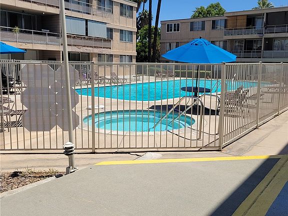 Cozy 2 bedrooms 1 bathroom upstairs unit in Magnolia Palms condo complex. Features open living and dining area with vinyl flooring throughout and large sliding glass door that opens up to a balcony overlooking the courtyard, in-unit laundry hookup, and central air. Kitchen with granite countertops, breakfast bar, newly updated cooktop, dishwasher, microwave, and wall oven. Bathroom has separate tiled shower stall and bathtub. Ceiling fan in both bedrooms. One gated parking space with extra storage cabinets. HOA features gated garage parking, landscaped courtyard, community pool and spa, and BBQ area. Conveniently located near the Riverside Plaza, 91 freeway, parks, and schools.