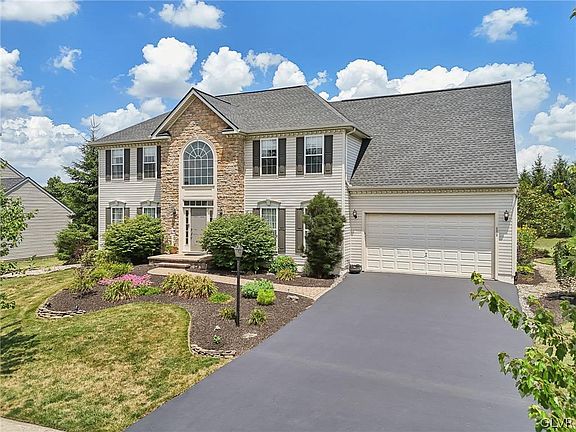 With nearly 4,000 square feet of living space and a luxurious resort-like backyard, this amazing Lower Macungie home offers everything you have been searching for! Enter the impressive 2 story foyer, highlighted by a beautifully updated hardwood and wrought iron staircase. Hardwood floors flow throughout the first floor, from the private office, spacious dining room, and into the fabulous open concept kitchen, breakfast nook, and family room. The centerpiece of the kitchen is the huge island with new quartz countertops and updated stainless appliances. A cozy gas fireplace highlights the family room. Abundant windows allow for a fantastic view of the backyard, with inground pool, outdoor kitchen, and lovely seating area with an outdoor fireplace. Enjoy the privacy of the open space beyond the backyard, with no neighboring homes directly behind the property. Upstairs, find a magnificent master suite with his and hers walk-in closets and a completely updated bathroom with expanded shower. 3 additional spacious bedrooms and another updated full bath round out the 2nd floor. The basement includes a large finished area and an equally large unfinished area for storage. 2 car garage plus a backyard shed. Located in the East Penn School District, close to Hamilton Crossings and other shopping, walking trails, and the neighborhood park.